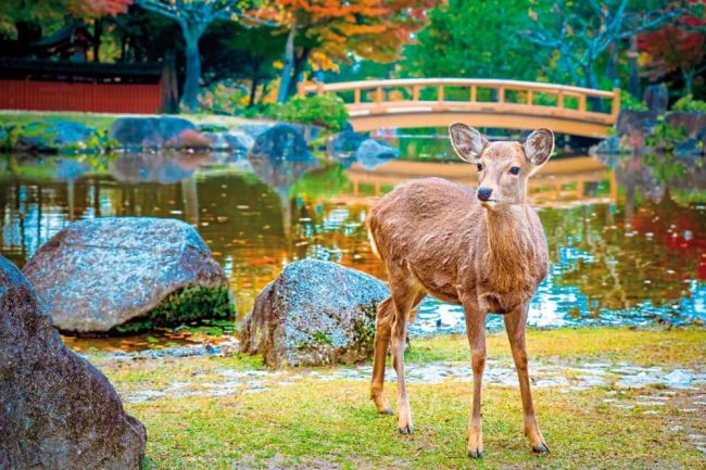 Morgens fahren Sie nach Nara, der Wiege der japanischen Kultur. Nara war im 8. Jahrhundert die erste Hauptstadt Japans, von der aus dauerhaft regiert wurde. Zu Fuß spazieren Sie durch den Nara-Park zu den einzelnen Besichtigungspunkten und können dabei die weltberühmten, freilaufenden Rehe beobachten. Der „Daibutsu“ gilt als die größte bronzene Buddha-Statue der Welt. Sie wird in der Großen Buddha-Halle vom Todaiji-Tempel verehrt, eines der größten Holzgebäude der Welt. Bei Ihrem Spaziergang durch den Nara-Park können Sie die zahmen Rehe beobachten und im Kofukuji-Tempel nicht nur die eindrucksvolle Pagode von 42 Metern Höhe, sondern auch die wiederaufgebaute „Goldene Halle“ des Komplexes bestaunen. Am späten Nachmittag erreichen Sie Ihr Hotel in Kyoto. 3 Nächte in Kyoto im Keio Prelia Hotel Gojo Karasuma (Mittelklasse). Ca. 400 km (Frühstück)