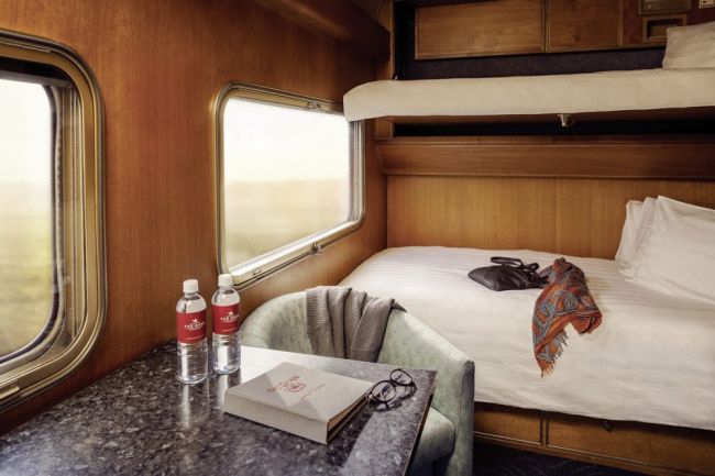 Kabinen mit 1 Liege (66 x 180 cm), tagsüber mit 1 Sitz ausgestattet. Waschbecken, Safe, Musikkanäle bzw. Reisekommentar im Entertainmentsystem. Gemeinschafts-Dusche und WC im Wagon.