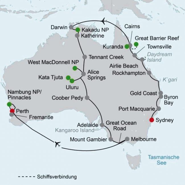 - Auch buchbar als Teilstrecke ohne Perth (27 Tage/26 Nächte). Anf R, Leistung SYD26025B (UG1X, UG2X).