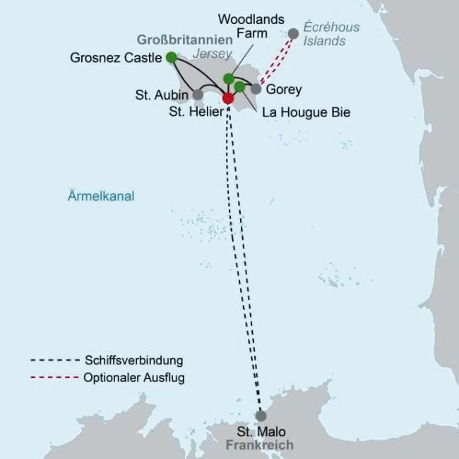 - Sammeltransfers ab/bis Flughafen Jersey am 1. und 8. Tag