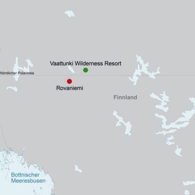 Der Vormittag steht Ihnen zur freien Verfügung. Nutzen Sie den Kulturpass Rovaniemi (inklusive) und erkunden Sie die Stadt. Wir empfehlen, mit dem Arktikum zu beginnen. Das Arktikum ist Wissenschaftszentrum und Museum, in dem Sie Wissenswertes über Natur, Kultur und Geschichte des Nordens erfahren und ein tieferes Verständnis für die Arktis bekommen. Sehenswert ist außerdem das Pilk Science Centre und die Korundi Kunstausstellung. Am Nachmittag Transfer zum Vaattunki Wilderness Resort (ca. 35 Min.). 3 Nächte im Vaattunki Wilderness Resort (Mittelklasse). (Frühstück, Abendessen)