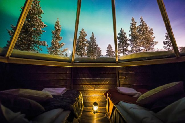 ist eine familiengeführte, exklusive Ferienanlage, ideal für Paare und kleinere Gruppen. Nur 15 Minuten vom Flughafen Ivalo und ca. 4 km vom Stadtzentrum entfernt ist die Unterkunft frei von Lichteinflüssen der Stadt und somit perfekt für die Beobachtung des Polarlichts am Abend. Das Haupthaus ist einem Lappenzelt nachempfunden und versprüht eine gemütliche Atmosphäre. Im Restaurant wird ein Frühstücksbuffet angeboten, ein Mittagsmenü à la carte, sowie ein 3-Gänge-Abendmenü, das am Tisch serviert wird. Verarbeitet werden qualitativ hochwertige Lebensmittel aus lokalen Zutaten mit dem Fokus auf Nachhaltigkeit. Für Entspannung sorgen die private Fass-Sauna sowie die Panorama Sauna mit Whirlpool (gegen Gebühr). Die Aurora Cabins sind um ein Rentiergehege angeordnet und ausgestattet mit Dusche und WC, Minibar-Kühlschrank, Nespresso-Maschine, WLAN, Doppel-/Zweibett und bieten durch das beheizte Glasdach eine herrliche Aussicht auf den Nachthimmel.