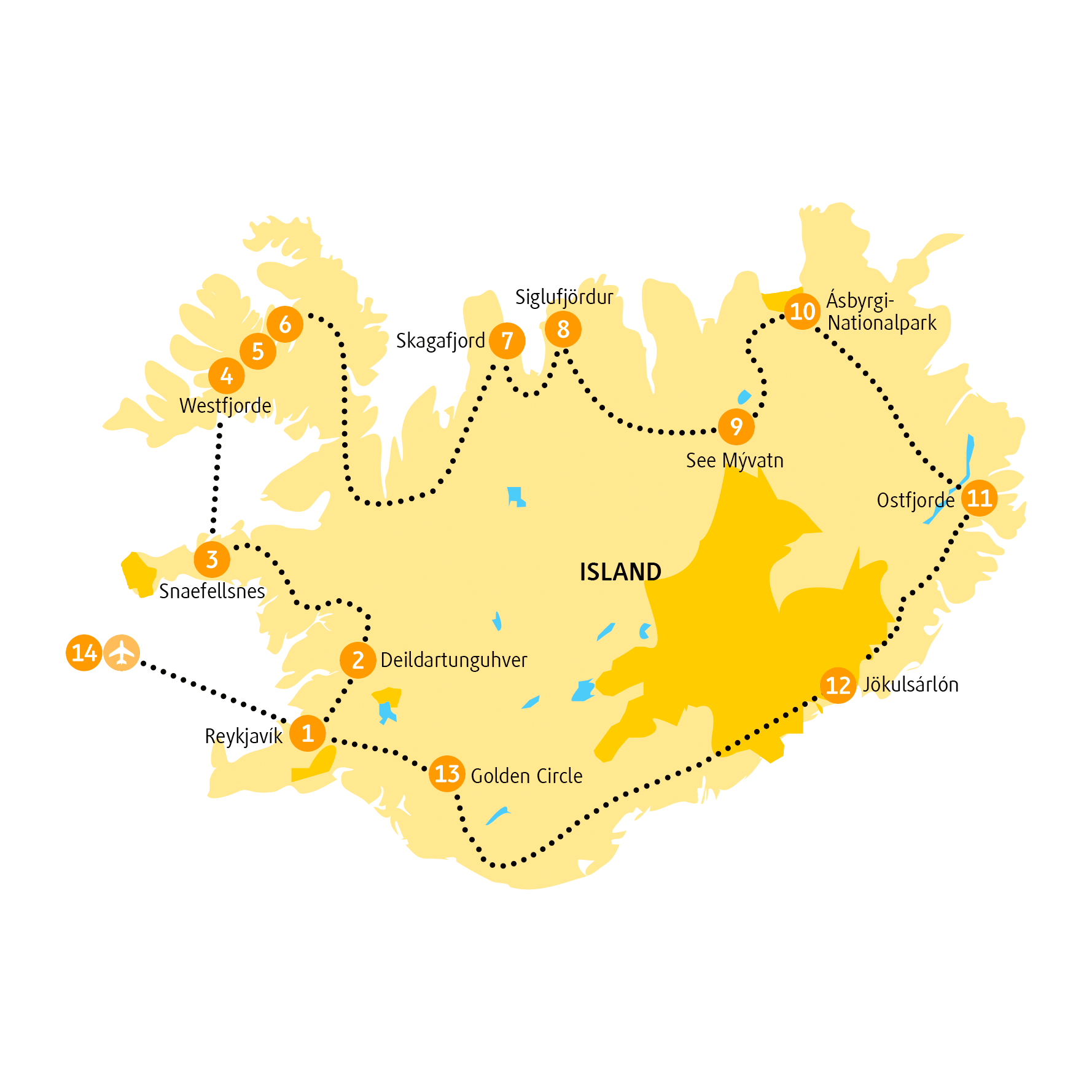 Bitte halte dich um 9:00 Uhr mit deinem Gepäck in der Lobby bereit. Du triffst deine Reiseleitung und startest das Islandabenteuer.