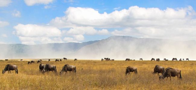 Noch mehr Safari: In der Savannenlandschaft siehst du vielleicht einige Tiere, die dir gestern noch nicht über den Weg gelaufen sind. Genieße die Weite, bevor du am frühen Nachmittag in die Ngorongoro Conservation Area fährst. Hier erwartet dich deine Unterkunft mit fantastischem Ausblick und den Geräuschen der Natur.
