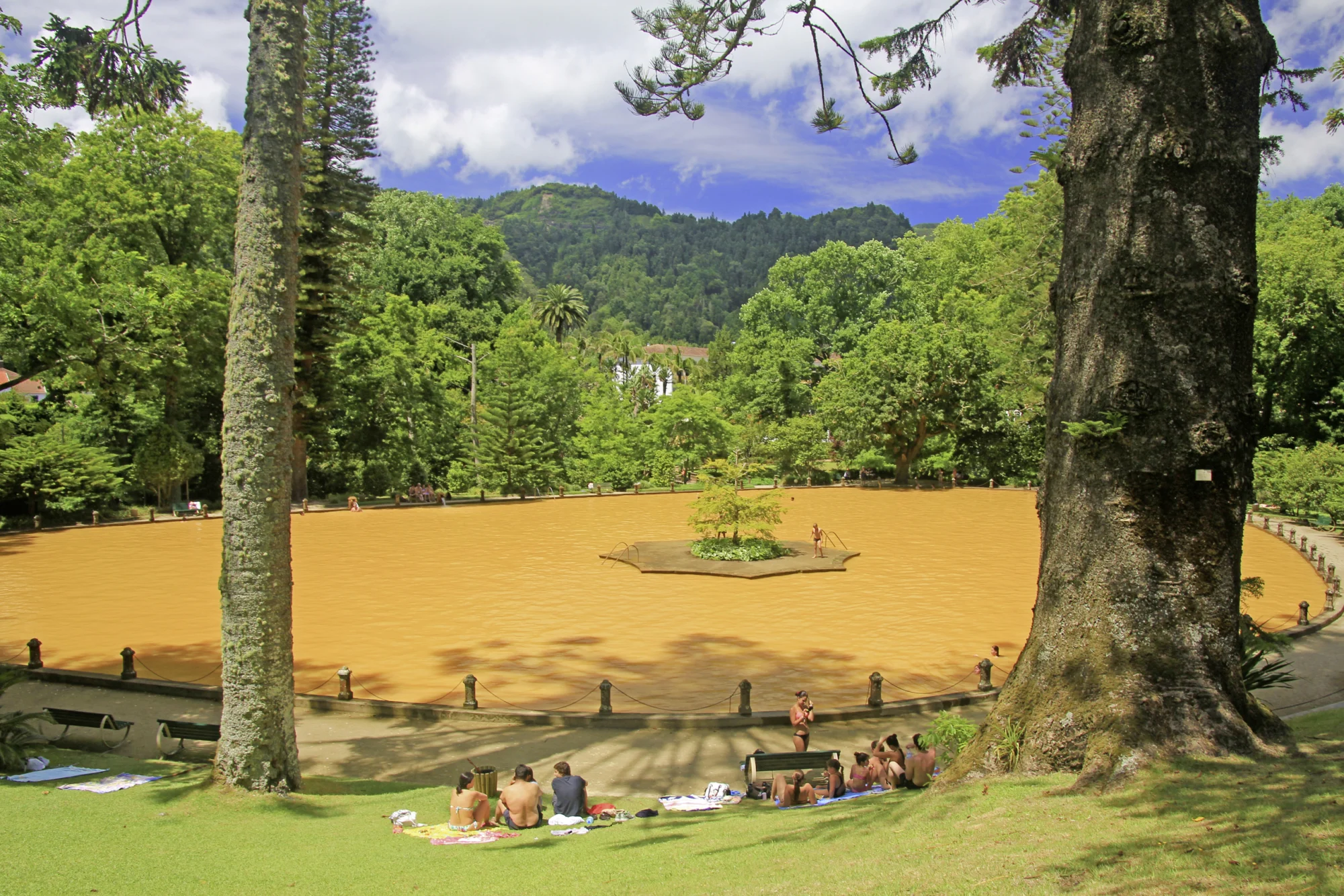 In Furnas besuchen Sie das Gebiet der heißen Quellen mit Thermalwasserbecken und Fumarolen, eine der spektakulärsten ist Caldeira Pêro Botelho. Zum Mittagessen wird Ihnen der traditionelle Eintopf Cozido das Caldeiras serviert, der in vulkanischer Hitze gekocht wird. Anschließend besuchen Sie den Terra Nostra Park mit seinen Seen, exotischen Pflanzen, Jahrhunderte alten Bäumen und dem Thermalbad. Auf dem Rückweg halten Sie an einer Teeplantage und am Aussichtspunkt Santa Iria.
