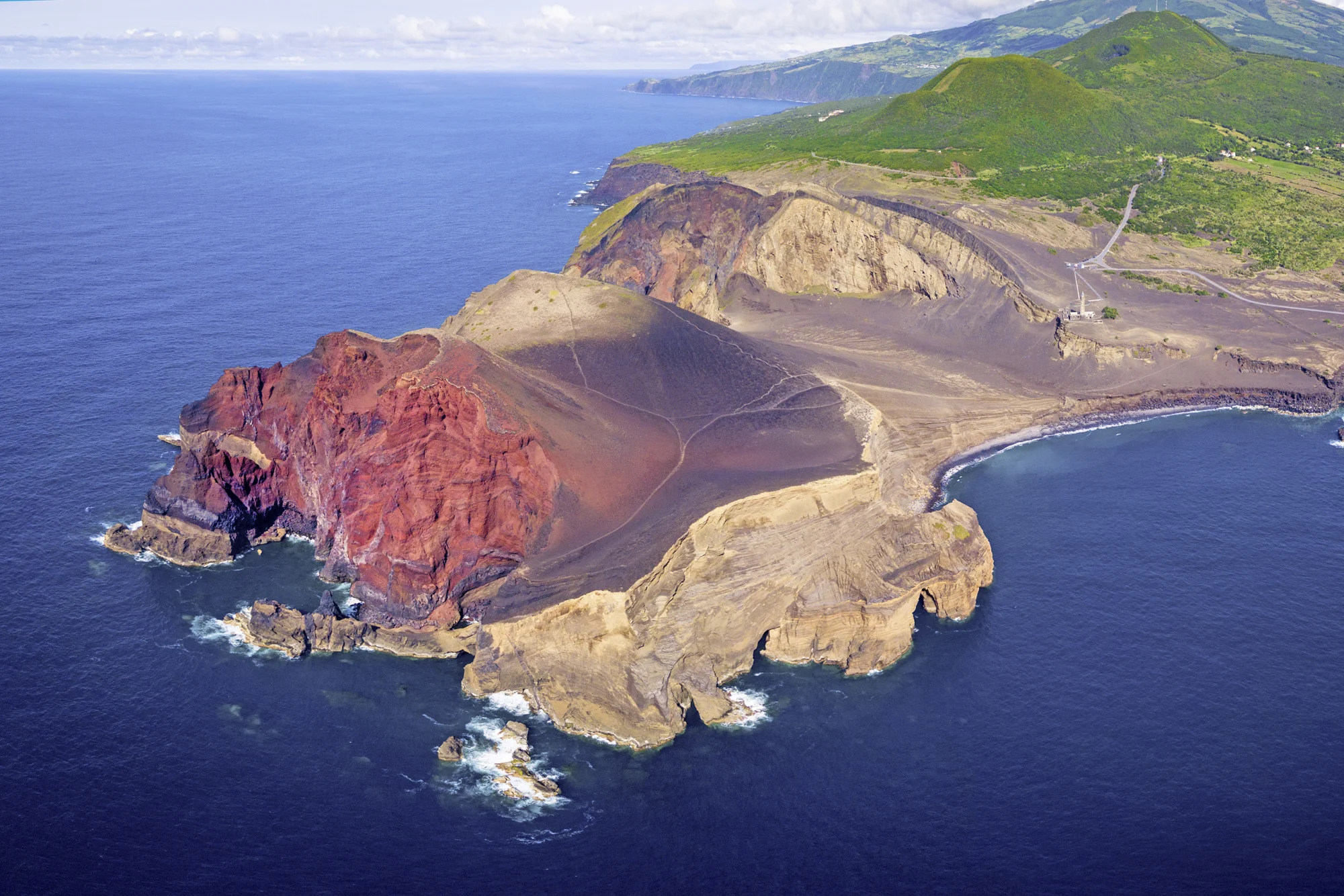 Fährüberfahrt nach Faial. In Capelinhos finden Sie die Ergebnisse eines der letzten Vulkanausbrüche auf den Azoren, der eine mondähnliche Oberfläche hinterließ. Das Informationszentrum zeigt eine interessante Ausstellung über seismischen Aktivitäten weltweit. Der Aussichtspunkt Espalamaca ist der beste Ort, um auf die benachbarten Inseln zu blicken.