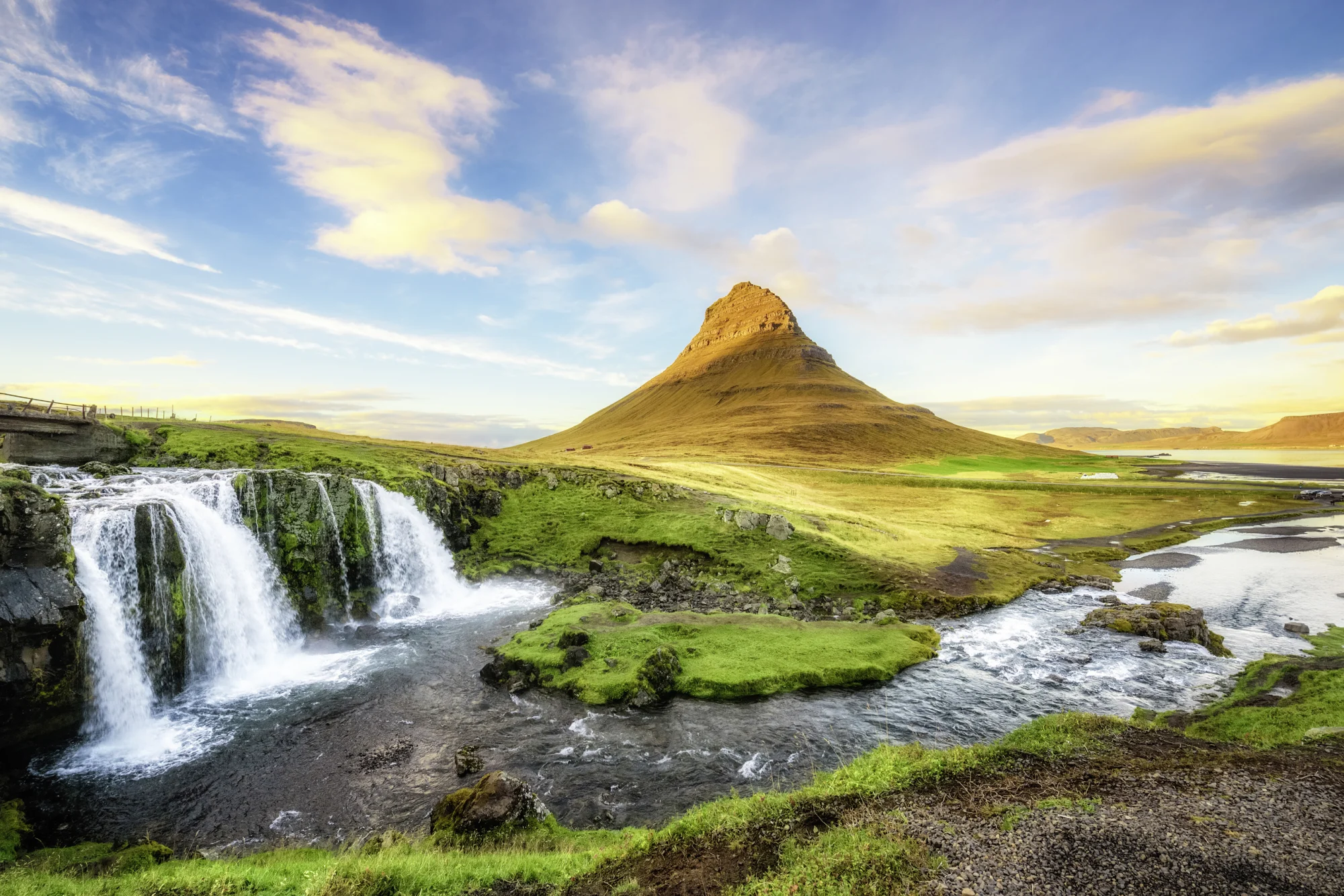 Die Halbinsel Snæfellsnes, auch „Island en miniature“ genannt, verzaubert mit einer kontrastreichen Landschaft. Der Berg Kirkjufell und der kleine Wasserfall in der Nähe, bilden im Zusammenspiel ein schönes Fotomotiv. Besuchen Sie außerdem die Lavahöhle Vatnshellir.