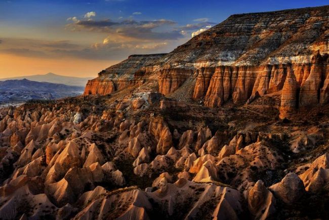 Das UNESCO-Welterbe Kappadokien gilt als Landschaft wie aus dem Märchenbuch. Die sogenannten Feenkamine wurden über Jahrtausende hinweg durch vulkanische Aktivitäten und Erosion geformt. In Göreme besuchen Sie in Tuffstein gegrabene, kunterbunt bemalte Kirchen und unterirdische Städte, die sich mehrere Stockwerke tief in die Erde erstrecken. Anschließend machen Sie einen Abstecher in die Töpfereistadt Avanos und in das Devrent-Tal. Hier war ausschließlich die Natur als Architektin tätig, Wind und Wasser haben aus dem weichen Tuffstein beeindruckende Skulpturen gemeißelt. Finden Sie das Kamel, den Adler oder den Delfin? (F)