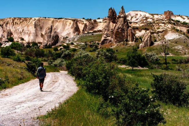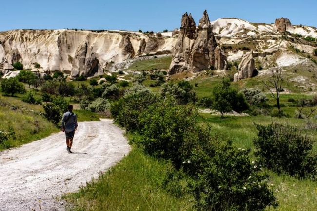 Welch eine magische Kulisse bildet das Rote Tal, das seinen Namen den Felspyramiden und Hügeln aus rotem Tuff verdankt. Sie wandern mit Ihrem Scout über geheimnisvolle Pfade, passieren unterwegs spektakuläre Felstunnel und uralte Höhlenkirchen. Werfen Sie Teppichknüpferinnen einen Blick über die Schulter und freuen Sie sich nachmittags auf ein weiteres Highlight: Das Zelve-Tal beherbergte einst eine der größten Höhlensiedlungen der Region. Im Tal der versteinerten Soldaten erinnern die markanten Felsformationen an eine Armee. Wo Sie den Sonnenuntergang am besten erleben? Ihr Scout kennt die idyllischsten Plätze.