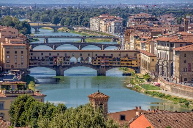Nach dem Frühstück brechen wir auf und fahren erneut mit dem Zug - heute in die andere Richtung - nach Florenz. Wenn wir aussteigen, wissen wir gar nicht, wo wir anfangen sollen. Ein Highlight ist sicher der Dom mit dem Glockenturm und dem Baptisterium. Und wieder können wir nur darüber staunen, wie viel Marmor auch hier in dieser wunderbaren Ausarbeitung verbaut worden ist. Aber Florenz hat noch so viel mehr zu bieten. In der Fußgängerzone spazieren wir an Cafés und Geschäften vorbei und stehen vor dem imposanten Rathaus der Stadt. So schön kann es in der Politik zugehen! Auf dem Ponte Vecchio finden sich noch heute Juweliere, dass es einem nur so entgegenfunkelt. Nachmittags bleibt Ihnen vor der gemeinsamen Rückfahrt nach Montecatini Terme noch Gelegenheit zu einem Stadtbummel oder bei einem klassischen Aperitivo das bunte Treiben zu beobachten. 100 km (F)