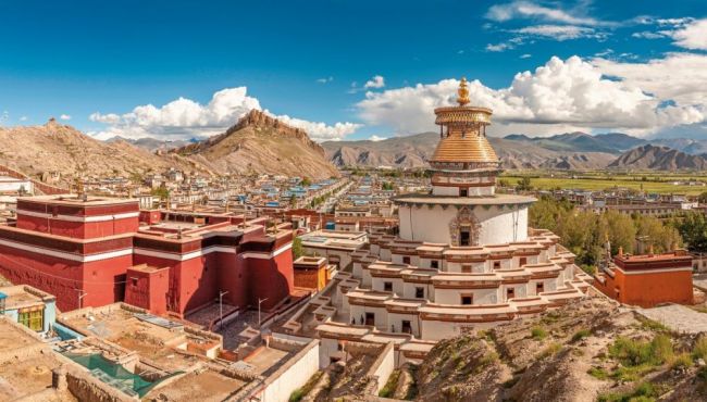 Am heutigen Vormittag führt die Landschaft des tibetischen Hochplateaus Regie. Sie überqueren auf der Fahrt nach Gyantse hohe Bergpässe und passieren einen Gletscher, der fast bis zur Straße hinunter reicht. Die Ausblicke auf den türkisfarbenen heiligen Bergsee Yamdrok sind atemberaubend. Sie haben Zeit für einen kurzen Fotostopp und einen Bummel am Seeufer, bevor Sie nach Gyantse weiterfahren. Diese Kleinstadt mit heute etwa 10.000 Einwohnern war früher ein wichtiger Stützpunkt der Händler, die nach Nepal und Indien unterwegs waren. Sie besuchen das bekannte Kloster Palkhor Chode mit der Stupa Kumbun, die wichtigste Sehenswürdigkeit der Stadt und das Fort von Gyantse, bevor Sie am Abend nach Shigatse weiter fahren. Eine Nacht im Shiga Yangcha Grand Hotel (gehobene Mittelklasse, Landeskategorie: 4 Sterne). (Frühstück)