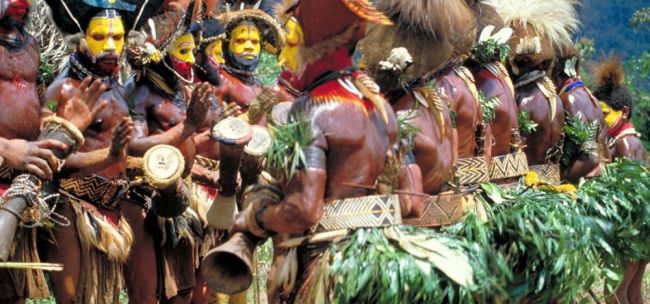 Von den rund 1.000 Volksgruppen Papua-Neuguineas lernen Sie heute gleich drei kennen. Am Vormittag besuchen Sie den Tambul-Stamm, der Sie mit einem farbenfrohen Sing-Sing begrüßt und Ihnen auch Tänze heranwachsender Frauen, die Kampfausrüstung für Stammesfehden, Totenrituale, aber auch alltägliche Praktiken wie Jagen, Klettern und Kochen im Mumu-Erdofen demonstriert. Nach dem Mittagessen geht es über eine malerische Bergkette in ein Dorf, wo Sie Vertreter der Melpa und Huli treffen. (FMA)