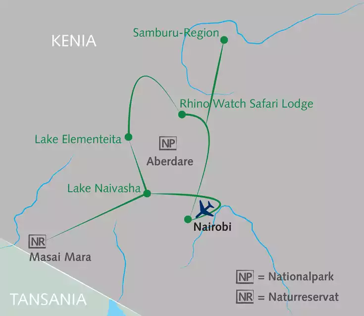 Wir lassen uns in die endlose Steppe der Masai Mara entführen und durchqueren den Großen Grabenbruch mit seinen Sodaseen. Wir wandern mit Blick auf den Mount Kenya und genießen die Faszination der Elefantenherden im Samburu-Land. Begegnungen mit den großen Herden der Gnus und Zebras in der Masai Mara. Rosa schimmernde Flamingos und Pelikane am Horizont beim atemberaubenden Ausblick auf den Kratersee. Gemütliche Safari-Lodges, private Schutzgebiete und Geheimtipp-Nationalparks für die Safaris. Was willst du mehr?