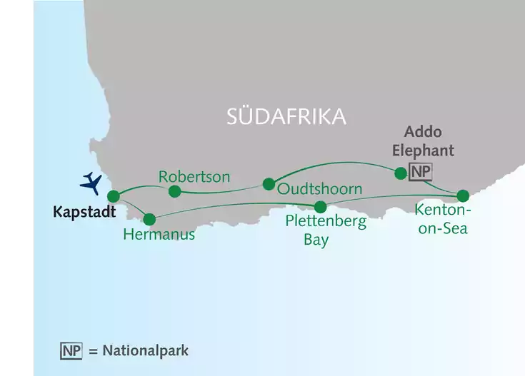 Ganz im Süden des Kontinents befindet sich eine der reizvollsten Regionen Afrikas. Eng beieinander liegen einsame Bergwelten und feinsandige Strände, die üppig-grünen Küstenregionen der Garden Route und die trockene Halbwüste der Karoo. Im Meer tummeln sich Robben und Wale und in Nationalparks und Wildreservaten haben die "Big Five" eine Heimat. Wir lernen die Schönheit der Kap-Provinz auf Wanderungen und ausgedehnten Pirschfahrten kennen und lassen unsere Reise "am schönsten Ende der Welt" ausklingen.