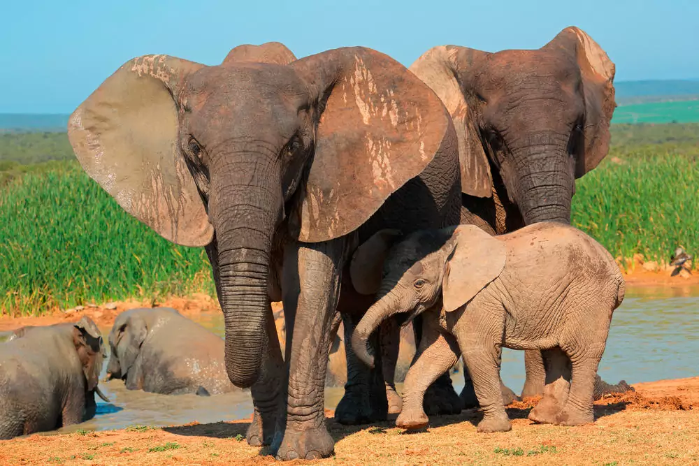 Die nächsten Tage widmen wir der Tierwelt Südafrikas. Wir durchqueren den Addo-Elephant-Nationalpark auf der Suche nach Elefantenfamilien. Am späten Vormittag lassen wir den Park hinter uns und gelangen zum familiengeführten Kariega-Wildreservat bei Kenton-on-Sea. 12.000 ha afrikanische Wildnis und ein leckeres Mittagessen warten hier auf uns. An unterschiedlichen Orten und zu unterschiedlichen Zeiten pirschen wir uns mit offenen Safari-Fahrzeugen an die "Big Five" – Elefant, Nashorn, Büffel, Löwe und Leopard – heran. Wenn die Bedingungen es erlauben, gehen wir inmitten des Wildreservats auf Wanderschaft und erkunden die einheimische Flora und Fauna zu Fuß. GZ ca. 2 Std. An den Abenden lauschen wir auf der Terrasse unserer komfortablen Lodge oder am gemütlichen Kamin der Symphonie der afrikanischen Natur. 2 Lodgeübernachtungen im Kariega Game Reserve. 190 km am 6. Tag. (2 x F, 2 x M, 2 x A)