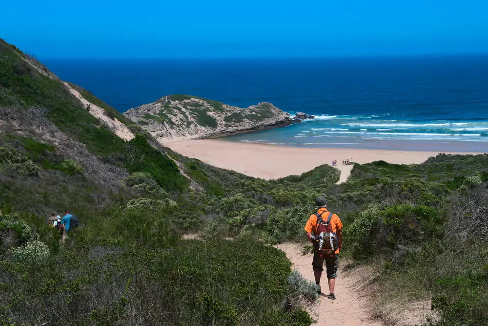 Während einer ca. einstündigen Bootsfahrt entlang der Flussufer am frühen Morgen, können wir mit etwas Glück Antilopen, viele Wildvögel und Afrikanische Schreiseeadler beobachten. Anschließend gelangen wir an den Indischen Ozean, in den Tsitsikamma-Nationalpark, wo wir bis zu den über den Storms River gespannten Hängebrücken wandern. GZ 1 - 2 Std. Weiter geht es nach Plettenberg Bay, das von den Südafrikanern nur liebevoll „Plett” genannt wird. Auf der Robberg-Halbinsel wandern wir am 9. Tag mit atemberaubendem Ausblick auf den endlosen Strand von "Plett" durch Sanddünen und Fynbos-Vegetation. Wir beobachten Vögel und mit etwas Glück Robben und Wale. GZ ca. 4 Std. 2 Hotelübernachtungen bei Plettenberg Bay. 390 km am 8. Tag. (2 x F)