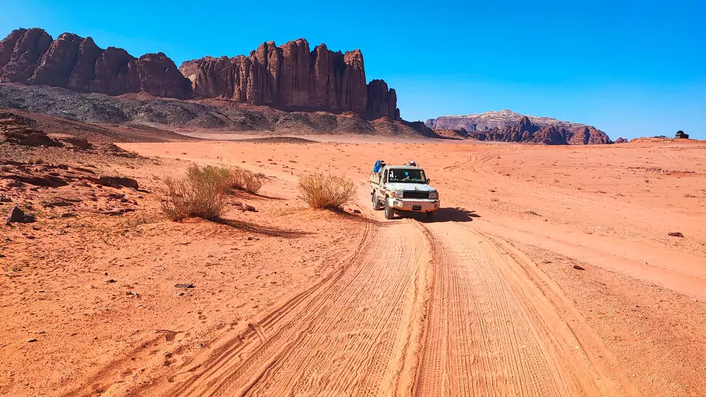 Früh raus und rein in die Schlucht. Bevor es in die Wüste geht, wollen wir noch ein paar Ecken von Petra erkunden. GZ 3-4 Stunden. Anschließend kurze Fahrt ins Wadi Rum. Hier steigen wir um in Geländefahrzeuge und entdecken die atemberaubende Schönheit der Wüstenlandschaft. Im Camp angekommen, genießen wir die herrlich stille Abendstimmung unter dem Sternendach des Wadi Rum. 2 Zeltübernachtungen im Wadi Rum. 100 km. (F, A)