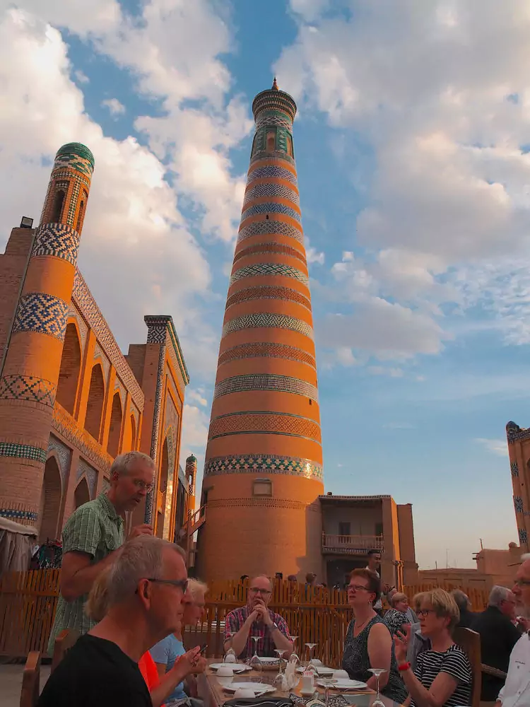 ... liegt am Rande der Wüste Karakum und wirkt wie ein Stein gewordenes Märchen aus 1.001 Nacht. Auf einer Stadtführung können wir neben Moscheen und Minaretten können auch alte Gasthäuser, wie das Mohammed Rakhim Khan, besichtigen. Auch das prächtige Pakhlavan Mahmud Mausoleum lassen wir uns nicht entgehen. (F, A)