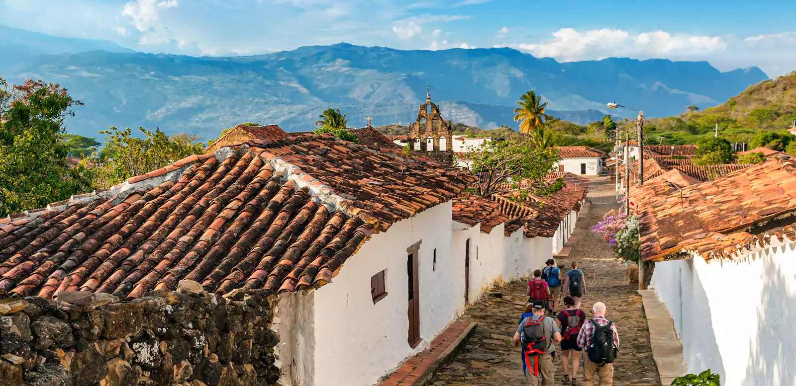 Barichara, mit seinen weiß getünchten Häusern und blauen Fensterläden, gilt als eines der besterhaltenen Kolonialdörfer Kolumbiens. Auf dem historischen Camino Real, einem königlichen Steinweg aus dem 18. Jahrhundert, wandern wir durch die Hügellandschaft ins idyllische Dorf Guane. GZ 3-4 Std., + 90 m, - 350 m (2 Stiefel). Einst Zentrum des gleichnamigen Indigena-Stammes, gibt ein kleines Museum Einblick in seine Geschichte. Am 6. Tag zieht es uns erneut hinaus in die Natur – auf einer aussichtsreichen Wanderung erreichen wir das charmante Dorf Villanueva. GZ 3-4 Std., + 425 m, - 250 m. 2 Hotelübernachtungen in Barichara. 195 km am 5. Tag. (2 x F)