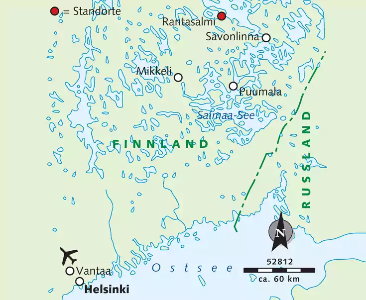 Hotel: Die weitläufige Anlage „Hotel und Spa Resort Järvisydän“ wird als Familienbetrieb in der 10. Generation geführt. Es war ursprünglich eine Pferdewechselstation auf einer wichtigen Handelsroute. Die Energie wird zu einem großen Teil aus der Erdwärme gewonnen. Es gibt ein Restaurant, einen Weinkeller, großzügige Aufenthaltsräume, 3 offene Kamine, eine „Bootsbar“, eine Kota (Lappenzelt) mit Feuerstelle, einen Grillplatz direkt am See, einen eigenen Bootssteg, eine Rauchsauna sowie eine traditionelle See-Sauna, beide mit Holz befeuert und mit Hot Pot im Freien. 2017 wurde der großzügige Wellnessbereich „Lake Spa“ eröffnet, herrlich in den Fels gebaut und sehr schön direkt am See gelegen. Mit 8 unterschiedlichen Saunen, mehreren kleinen Wasserbecken – auch mit Seewasser –, einem Yoga- und Gymnastikplatz sowie mehreren Behandlungsräumen. Der tägliche Eintritt ist inkl. Handtücher im Preis enthalten. Der Bademantel kann vom Zimmer mitgenommen werden. Behandlungen wie Massagen etc. gegen Gebühr. Ein kleiner Kaufladen und Souvenirshop rundet das Angebot ab. Zimmer: Wir schlafen in einigen der komfortablen 8 Villen unweit des Hauptgebäudes mit jeweils 5 gut ausgestatteten 2-Bett-Zimmern, alle mit eigener Dusche/WC, einem großzügigen Aufenthaltsraum mit Sitzgruppe, offenem Kamin, eigener Terrasse und Sauna. Die Zimmer werden 1-mal wöchentlich gereinigt. Verpflegung: Frühstück und Abendessen nehmen wir im Hotelrestaurant ein. Das Abendessen erfolgt entweder in Menü-Form oder als Büfett. Für unseren Lunch können wir im hoteleigenen Shop Kleinigkeiten kaufen. Lage: Das Hotel liegt sehr schön direkt am See Haukivesi inmitten des riesigen Saimaa-Seengebietes, umgeben von einer leichten Hügellandschaft. Geografisch liegt es in Südostfinnland in den Gebieten Südkarelien und Südsavo. Zum nächsten Dorf Rantasalmi sind es ca. 10 km und nach Savonlinna ca. 50 km.