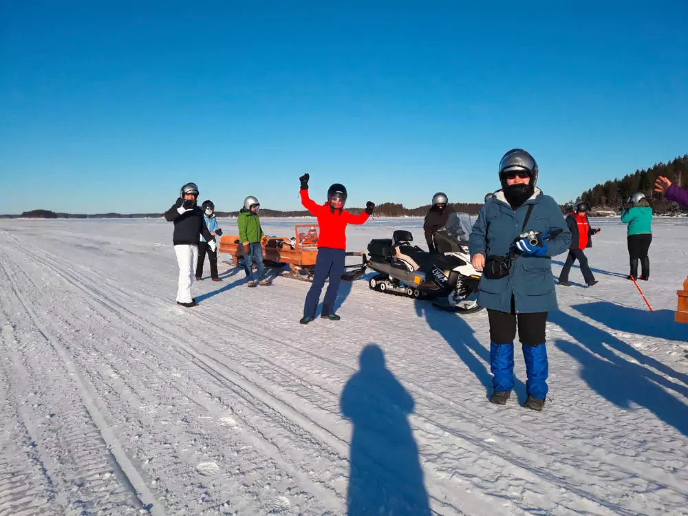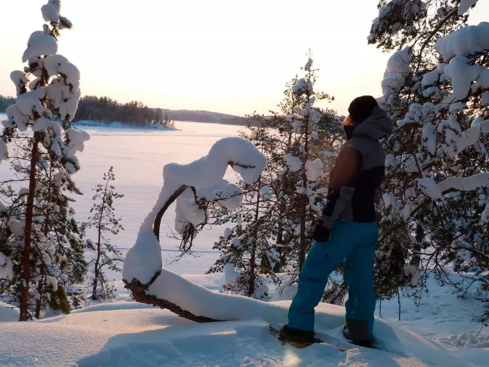 Ca. dreistündige Winterwanderung durch die Winterlandschaft am Saimaa-See. Wir haben die Schneeschuhe dabei, sollte die Schneelage das erfordern. Zur Mittagszeit versuchen wir uns am finnischen Volkssport, dem Eisangeln und genießen anschließend typisch finnisch eine köstliche Fischsuppe und heißen Kaffee – natürlich über dem Feuer zubereitet. Zum Aufwärmen eignen sich mehrere Saunen im sagenhaften Sauna- und Wellnessbereich des Hotels.