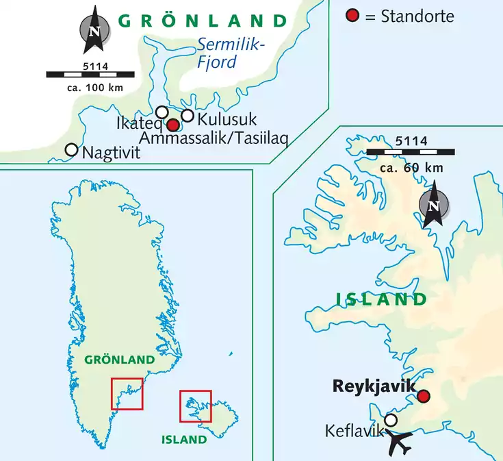 Genieße die einzigartigen Naturerlebnisse der größten Insel der Welt: treibende Eisblöcke, tiefblaue Fjorde und arktische Blumenpracht. Begeistere dich für die Kultur und Tradition der Inuit. Schlendere durch Dörfer, vorbei an langen Reihen getrockneten Stockfischs, bunt gestrichenen Häusern und jaulenden Schlittenhunden. Erwandere die faszinierende Bergwelt der Ostküste mit dem alles überragenden Inlandeis. Und erfreue dich der Vorteile nur eines Standortes im Hauptort Tasiilaq. Ohne Frage – Ostgrönland begeistert, fasziniert und berührt.