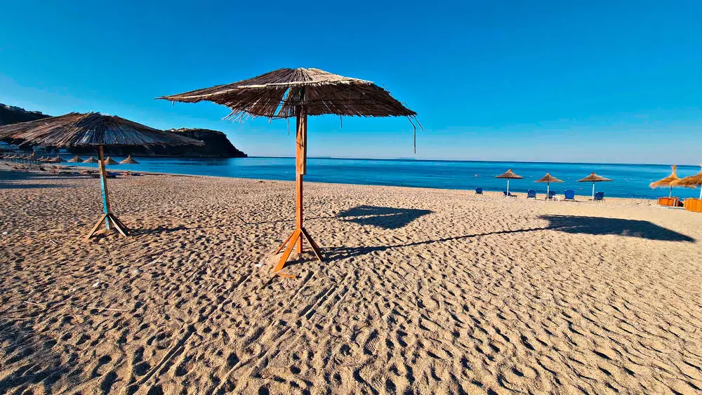 Transfer auf den Llogara-Pass im gleichnamigen Nationalpark auf ca. 1.030 m Höhe. Hier genießen wir den Blick über die Weite des Adriatischen Meeres. Auf Serpentinenstraßen rollen wir auf unseren Rädern hinunter zum Hotel in Radhimë. Mittags Abgabe der Räder. Der Nachmittag bleibt uns zum Entspannen am Kiesstrand der albanischen Adria. Alternativ organisiert deine Reiseleitung gerne noch einen Ausflug in die Küstenstadt Vlorë (fakultativ). (1 Ü/F, M, A)