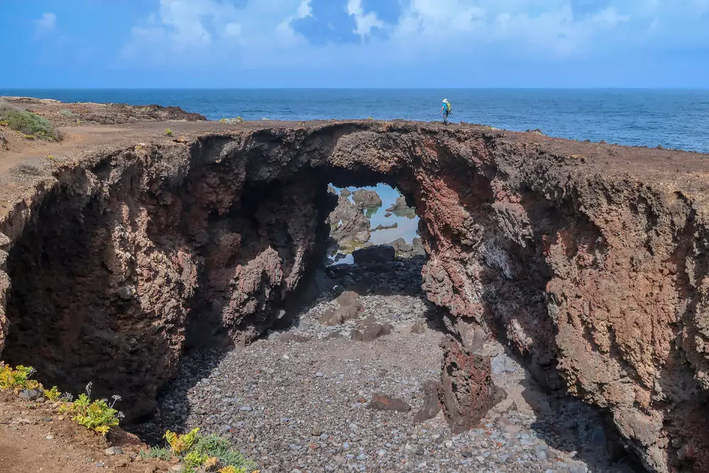 Auf schmalen Pfaden durch einen Sukkulentengarten scheinen wir uns beinahe zu verlieren. Verwilderte Fincas mit Mandelbäumen säumen den aufsteigenden Weg, der uns in eine raue Vulkanlandschaft führt. Kiefern und Kaktusgewächse schaffen lebendige Oasen. Mit weiten Blicken auf den Atlantik steigen wir ab nach Arguayo (GZ: 3 1/2 Std., + 350 m, - 390 m).