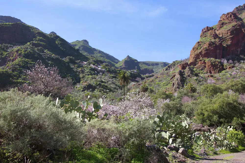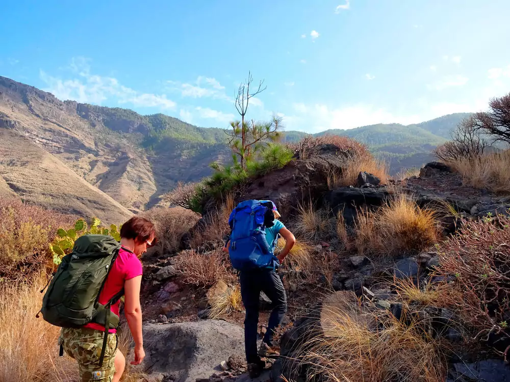 „Von Palmenoase zu Palmenoase" lautet unser heutiges Motto. Ein Bergrücken trennt die von Palmen umgebenen Dörfer Fataga und Santa Lucía. Der Weg führt hinauf zum Weiler Sitio de Arriba und wieder hinab zum Sorrueda-Stausee. Schließlich erreichen wir Santa Lucía, ein gepflegtes Örtchen inmitten blühender Gärten und Olivenhaine (GZ: 4 1/2 Std., + 465 m, - 400 m).