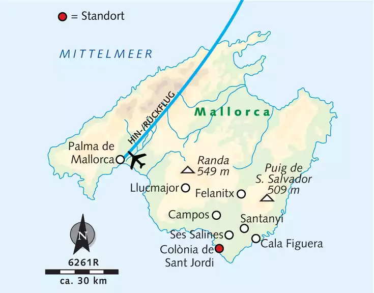 Flug nach Palma de Mallorca und Transfer zu unserer Unterkunft.