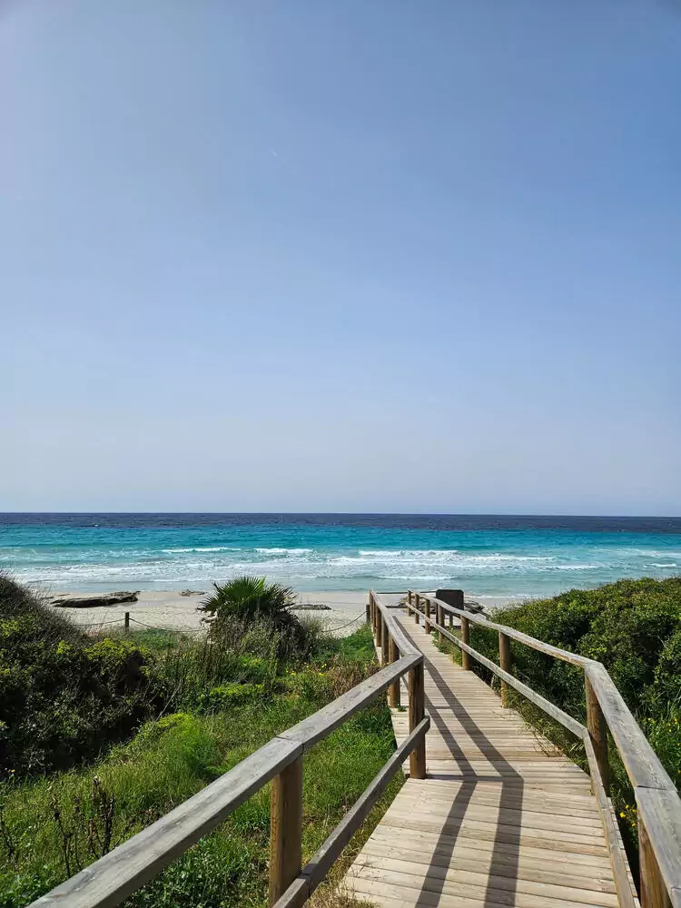 Diese Tour beginnt am längsten Strand der Insel und folgt dem Camí de Cavalls nach Osten. Unterwegs queren wir mehrere kleine Schluchten und laufen an prächtigen Obstplantagen vorbei. Nach Passieren der Feriensiedlung Cala en Porter folgen wir dem Weg zu den Höhlenbuchten von Cales Coves und beenden unsere Wanderung in Es Canutells (GZ: 4 1/2 Std., +/- 100 m).