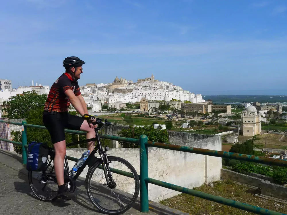 Wir radeln an Olivenhainen und Weinfeldern entlang und passieren das barocke Martina Franca, wo wir eine Olivenölverkostung machen. Weiter geht es über das wunderschöne Locorotondo zu unserem Hotel in Ostuni, der weißen, auf einem Felsen erbauten Stadt. Am frühen Abends ist Zeit um die hübsche Altstadt zu erkunden. (1 Ü/F, A)