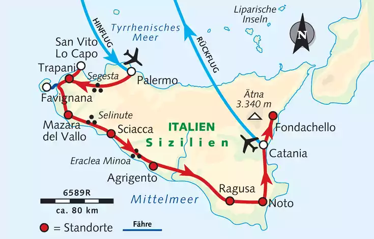 Auf dieser außergewöhnlichen Entdeckungsreise erleben wir die Vielfalt der größten Mittelmeerinsel per Rad: kilometerlange Sandstrände, buchtenreiche Küsten, Ruinen, in denen die Antike noch hautnah zu spüren ist, quirlige, in barocker Pracht erstrahlende Städtchen und nicht zuletzt der imposante, zum UNESCO-Weltnaturerbe gehörende Vulkan Ätna! Sizilien beeindruckt mit traumhafter Landschaft und bewegender Geschichte.