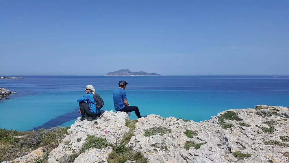 Per Fähre gelangen wir auf die Insel Favignana, die größte der Ägadischen Inseln. Auf unseren Rädern erkunden wir die Insel mit ihren türkisfarbenen Buchten. (F, A)