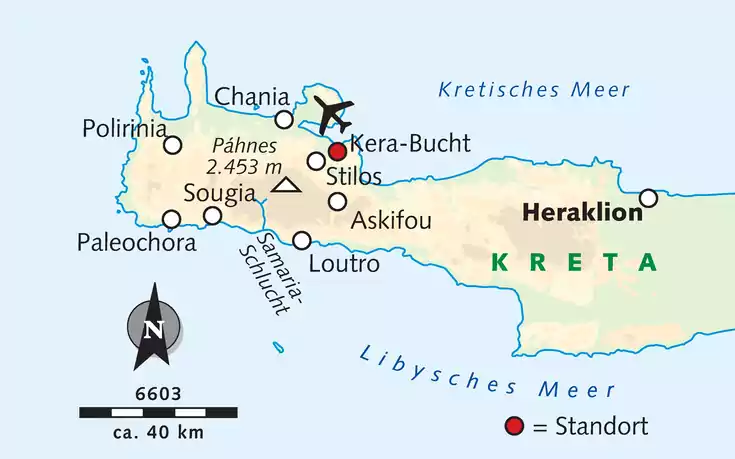 Flug nach Heraklion und Fahrt in die Kera-Anlage (ca. 2 Stunden).