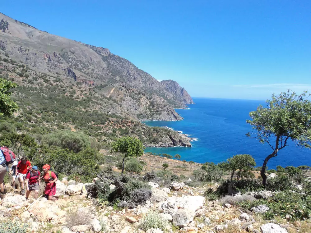 Diese Wanderung beginnt im Bergdorf Anopolis und führt durch die „Aradhena-Schlucht“ an die Küste. Von hier aus wandern wir über das idyllische Dorf Loutro (Dieses Dorf ist nur per Boot oder zu Fuß zu erreichen.) an der herrlichen Küste entlang bis nach Chora Sfakion, dem Hauptort der „Wilden Sfakia“ (GZ: 6 1/2 Std., + 150 m, - 600 m).