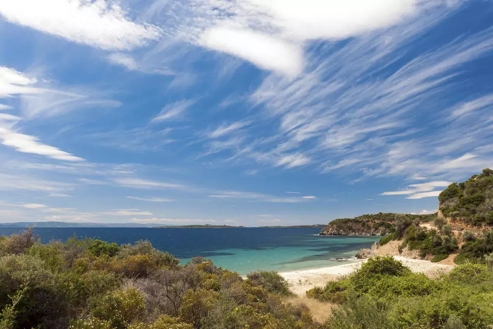 Nikiti, unser Ausgangspunkt, ist ein Paradestädtchen makedonischer Baukunst: Natursteinhäuschen mit roten Ziegeldächern und den typischen Kaminen prägen das schmucke Ortsbild. An der schönen Dorfkirche vorbei erreichen wir nach kurzem, steilem Anstieg eine Kapelle, die zur Rast einlädt. Nach ca. 2 Stunden kommen wir in dem sehenswerten Städtchen Agios Nikolaos an. Weiter geht es durch Felder und schließlich am Meer entlang bis zu unserem Ziel, dem Hafen Ormos Panagias (GZ: 4 Std., +/- 250 m).