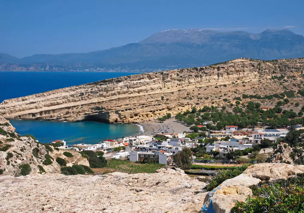 An den Felsklippen über dem Komos-Strand beginnt unsere aussichtsreiche Wanderung, die am Strand von Matala mit seinen vermutlich über 8.000 Jahre alten Wohnhöhlen endet (GZ: 2 Std., +/- 100 m). Wer möchte, kann weiter bis zum Red Beach wandern (GZ: 50 Min., +/- 100 m). Anschließend besichtigen wir in Festos die Ruinen einer weiteren minoischen Palastanlage. Ebenfalls in der Messara-Ebene liegt Gortys, die ehemalige römische Hauptstadt Kretas. Hier sehen wir unter anderem die Titus-Basilika und die „Große Inschrift“, den bislang ältesten aufgefundenen Gesetzescodex Europas.