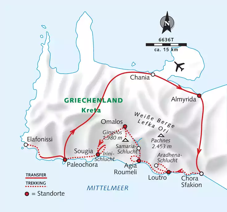 Der Südwesten Kretas eignet sich fantastisch zum Wandern. Erlebe intensiv die raue Südküste mit ihren ursprünglichen Dörfern und eindrucksvollen Schluchten. Die Lefka Ori (Weiße Berge) mit etlichen Gipfeln über 2.000 m, tiefen Canyons und fruchtbaren Hochebenen fallen im Süden steil ab zum Meer. Einige wenige Dörfer sind teils nur zu Fuß oder per Schiff erreichbar. Anspruchsvolle Wanderungen wechseln ab mit Badetagen und stimmungsvollen Abenden in idyllisch gelegenen Orten, die überwiegend am Meer liegen.