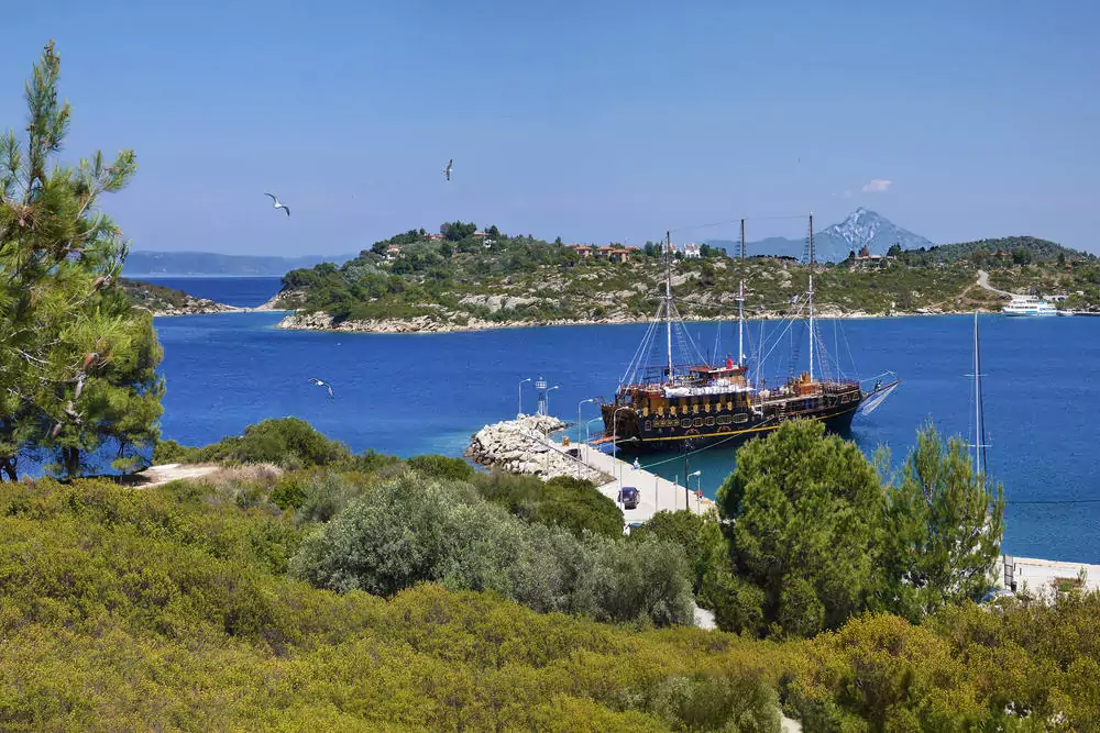Die Überquerung der Sithonia-Halbinsel starten wir auf der südwestlichen Seite bei Nikiti, einem Städtchen mit typisch makedonischer Architektur. Wir wandern über einen Berg mit der kleinen Kapelle Prophitis Ilias und steigen ab nach Ormos Panagias (GZ: 4 Std., +/- 250 m). Zum schönen Abschluss des Tages können wir hier baden oder in einem der vielen Cafés im kleinen Hafen einkehren.