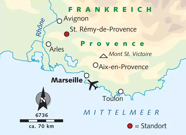Flug nach Marseille und gemeinsamer Transfer zu unserem Hotel in St. Rémy-de-Provence.