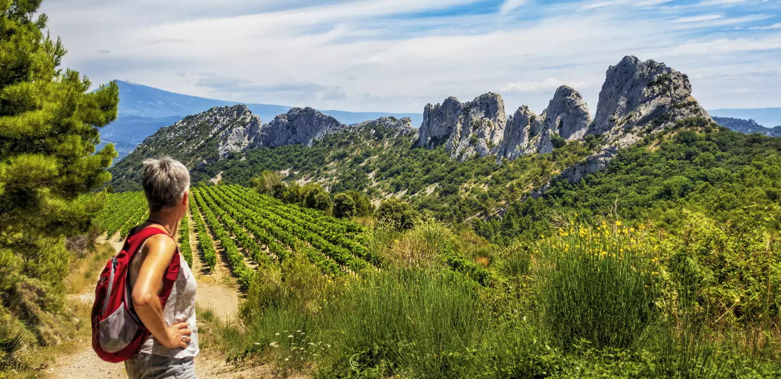 Durch felsgesäumte, grüne Täler gelangen wir auf Forstwegen zum malerischen Dörfchen Venasque, ehemalige Zufluchtsstätte der Bischöfe von Carpentras. Der Ort lädt mit verschiedenen Einkehrmöglichkeiten zu einer längeren Mittagspause ein. Wunderschöne Ausblicke auf den Mont Ventoux begleiten den zweiten Teil der Wanderung bis Le Beaucet. Fast verfallen, avancierte der Ort zum beliebten Künstlerrefugium und zeigt sich heute fast komplett restauriert (GZ: 3 1/2 Std., +/- 350 m).