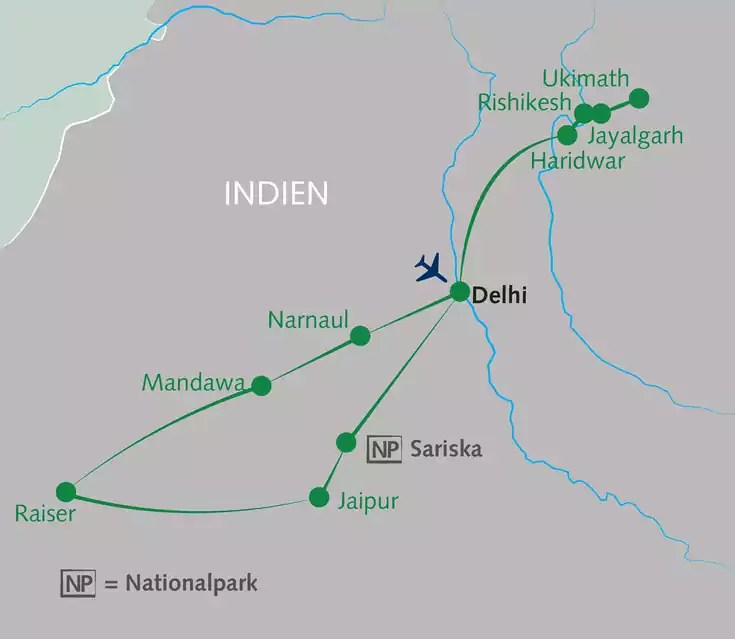 Schneeberge und goldene Dünen, brausender Ganges, die Stille der Wüste und Delhis schwindelerregende Rasanz: Indien ist ein Land der 1001 Landschaften. Ein Land für Entdecker! Hast du Lust auf ein buntes Reiseerlebnis, das auf Schritt und Tritt die Sinne raubt? Wir wandern über die Almen Gharwals und schlendern in Haridwar entlang des Ganges. Dann wechseln wir in das eindrückliche Rajasthan: sanfte Hügel, dazwischen Tempel, Forts und Paläste. In der Wüste satteln wir unsere Kamele und reiten entlang von goldenen Sanddünen. Ob Wüste, Berge oder bezaubernde Städte – die Zeit scheint stehen zu bleiben. Komm mit ins Märchenland!