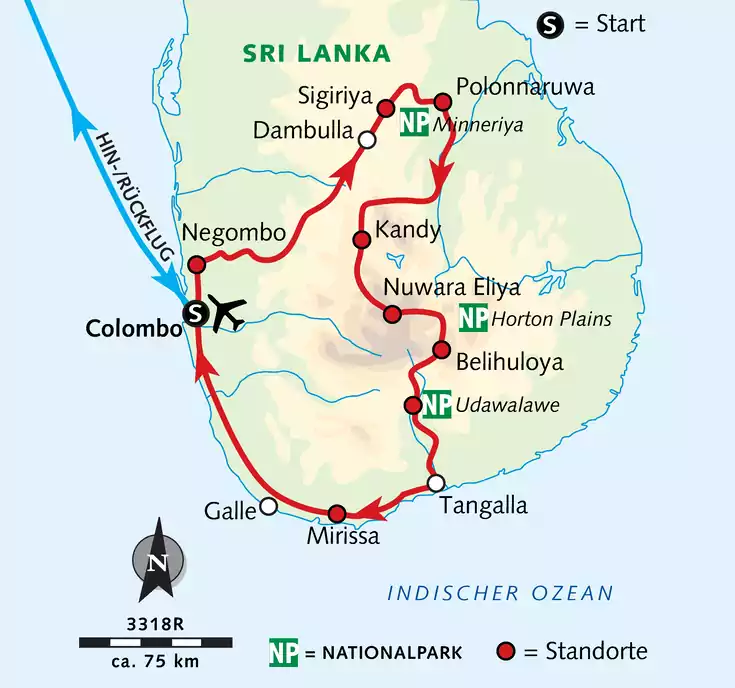 Sri Lanka ist eine Insel mit erstaunlicher Vielfalt an Landschaften und kulturellen Highlights. Es bietet sich geradezu an, die sehr agrarisch geprägte Insel radelnd auf Nebenstraßen und guten Feldwegen zu erkunden. Das flache Küstenhinterland, das vom Teeanbau geprägte Hochland und der tropisch grüne Süden bieten uns jede Menge Abwechslung und Einblicke in die Lebensweise der herzlichen Bewohner. Ein Besuch der historischen Stätten von Polonnaruwa im Norden und von Kandy, der alten Hauptstadt der Singhalesen, runden die Reise ab.