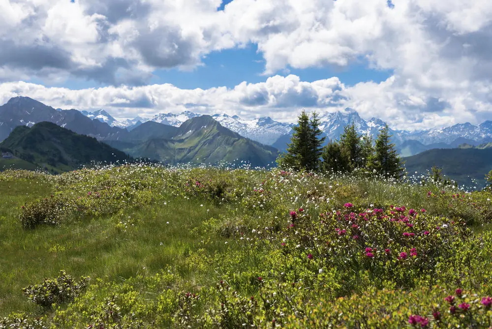 Der Bregenzerwald südlich des Bodensees ist ein Wandergebiet von eigenwilligem Reiz. Als Übergangsgebiet zwischen Mittel- und Hochgebirge wird die Landschaft von saftigen Wiesen, dichten Wäldern und malerischen Dörfern geprägt. Erst um Damüls (1.400 m), dem höchstgelegenen Ort des Bregenzerwaldes, erreichen die Berge 2.000 m. Begleitet werden wir auf unseren aussichtsreichen Wanderungen von dem Glockengeläut unzähliger Almkühe, und die wildromantischen Bergwiesen sind mit ihrer Blumenpracht eine wahre Augenweide.