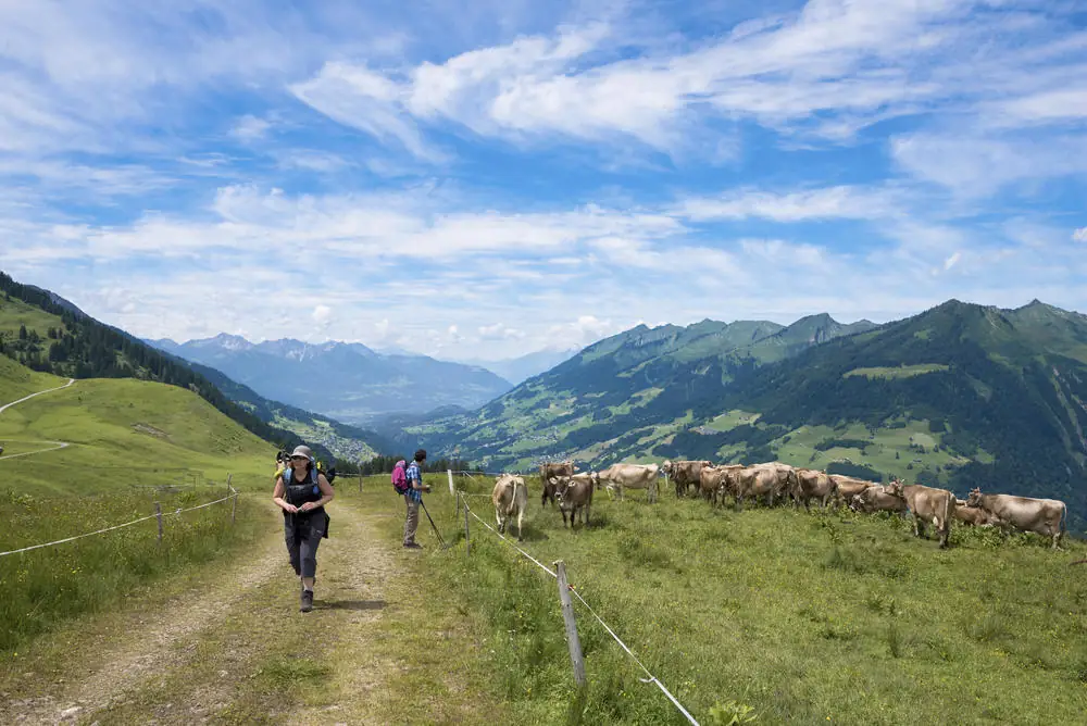 Transfer zur Talstation Sonntag-Stein und Bergfahrt mit der Seilbahn. Über die Hütten Unterpartnom und Oberpartnom gelangen wir zur Breithornhütte. Hier genießen wir während unserer Pause das herrliche Panorama über das Große Walsertal. Über einen Höhenweg und einen weiten Bogen gelangen wir wieder zur Bergstation. Talfahrt und Rücktransfer zum Hotel (GZ: 4 Std., +/- 450 m).