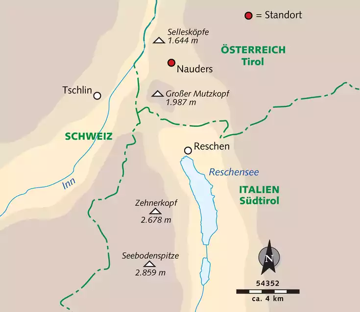 Hotel: Wir übernachten im sehr gut ausgestatteten und komfortablen Vier-Sterne Hotel Post, ein traditionsreiches Hotel, welches seit über 200 Jahren ihre Gäste mit Herz und Seele bewirtet. Liebevolle Wohndetails und der Charme Tiroler Handwerkskunst sorgen für eine Wohlfühl-Atmosphäre. Im hauseigenen Restaurant genießen wir eine variantenreiche Küche mit regionalen Produkten. Der Küchenchef legt viel Wert auf regionale Tiroler Küche. Im Untergeschoss des Hotels liegt in einem prächtigen Gewölbe aus dem 16. Jahrhundert ein 650 m² großer Wellnessbereich mit besonderem Flair. Hier erwarten uns eine finnische Sauna, eine Biosauna, ein Dampfbad, eine Infrarotkammer und ein Ruheraum zum Entspannen. Zimmer: Geräumige Doppelzimmer "Fuhrmann" (30 m²) mit hellen Möbeln im Tiroler Stil ausgestattet. Sie verfügen über eine Schlafcouch, SAT-TV, Radio, Telefon, Balkon und Safe. Bei den Doppelzimmern zur Alleinbenutzung handelt es sich um die Kategorie "Hufschmied" ohne Balkon. Verpflegung: Frühstücksbüfett und Vier-Gang-Abendmenü mit Suppen- und Salatbüfett Lage: Das Hotel liegt direkt im Zentrum von Nauders und ist nur 3 km vom Reschenpass entfernt.