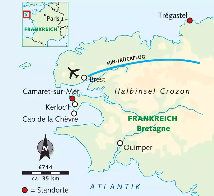 Flug nach Brest und Transfer nach Trégastel.