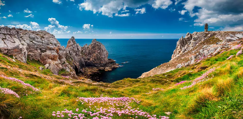 Nachdem wir die schmale Halbinsel von Camaret durchquert haben, wandern wir auf einem Küstenpfad mit grandiosen Ausblicken zur spektakulären Steilklippe des Pointe de Penhir. Von dort führt uns der Küstenpfad zurück zum Hotel (GZ: 4 1/2 Std., +/- 250 m).