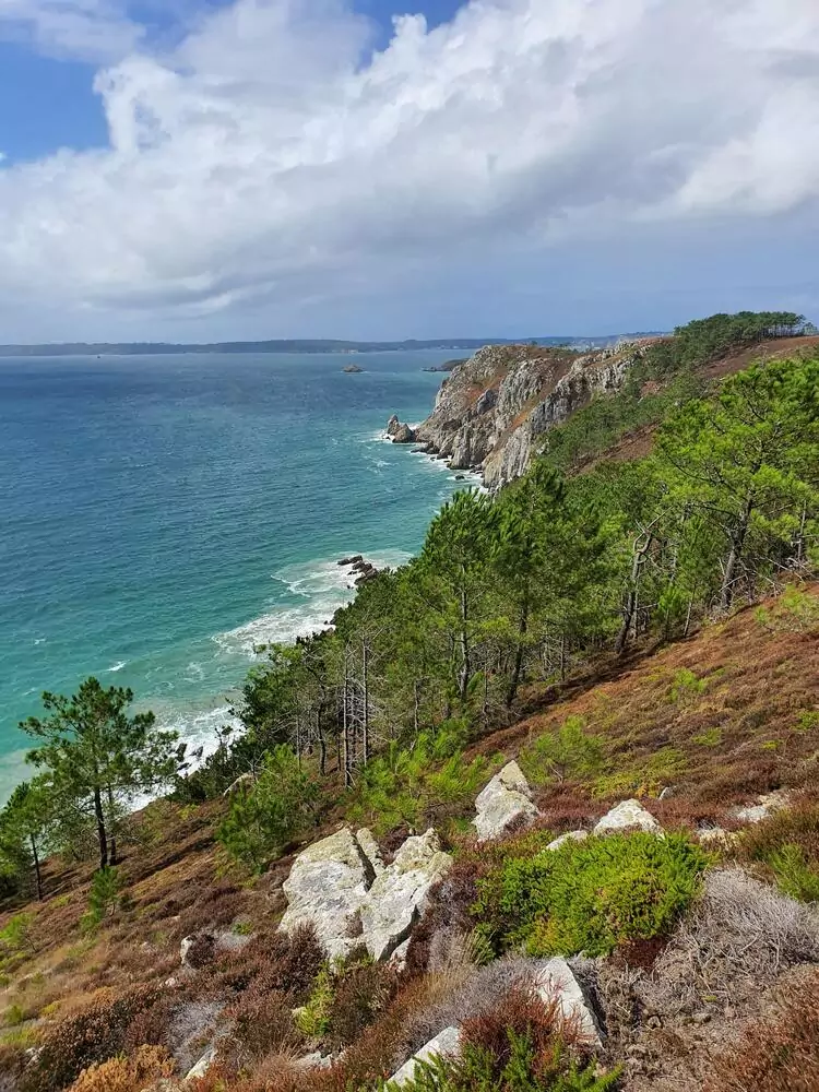 Der spektakulärste Abschnitt des gesamten Küstenpfades auf der Halbinsel Crozon ist die Umrundung des Cap de la Chèvre und der anschließende Weg entlang der Ostküste mit Klippen, winzigen Buchten, einem lichten Pinienwald und einmaligen Aussichten (GZ: 4 1/2 Std., +/- 500 m).